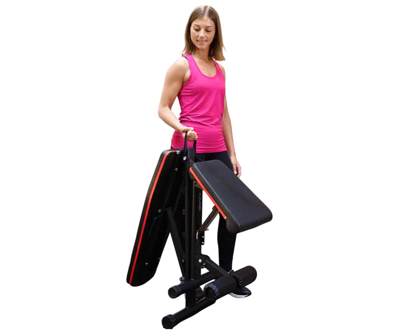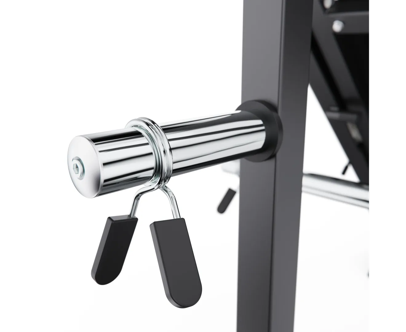 Эргономика скамьи обеспечивается 8 уровнями регулировки спинки и 3 уровнями регулировки сиденья, что позволяет легко менять положение для выполнения жима в горизонтальном и наклонном положениях. Высота от сиденья до пола составляет 46 см. Обивка из высококачественной водоотталкивающей экокожи обеспечивает комфорт, поддержку и простой уход.