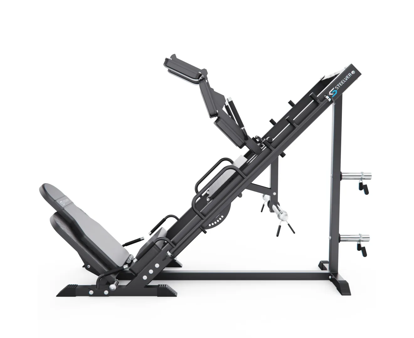 BRONZE GYM рад представить вам новейший тренажер BLANC 03 для жима ногами. Этот тренажер является частью широкой линейки BLANC, которая включает в себя целых 24 уникальных устройства для тренировок. Он предназначен для комплексного укрепления мышц нижних конечностей, включая квадрицепсы, мышцы бедра, ягодичные мышцы и икроножные мышцы. Проведение упражнений на этом тренажере поможет вам улучшить силу и выносливость ног, а также поддерживать правильную форму нижней части тела. Это особенно важно для спортсменов, людей, ведущих активный образ жизни, а также для профессионалов, где сила и стабильность ног играют огромное значение. BLANC 03 - это тренажер, который учитывает биомеханику движений, обеспечивая оптимальное сочетание функциональности и анатомических особенностей для поддержания мышц ног. Поддерживая правильное распределение нагрузки на целевые группы мышц, он учитывает естественные позиции тела и создает оптимальные углы для тренировки без излишнего напряжения на суставы и связки. Этот подход помогает безопасно и эффективно достигать желаемых результатов в тренировках на BLANC 03, минимизируя риск получения травм и сохраняя здоровье. Активно трудятся специалисты по промышленному дизайну, чтобы придать тренажеру BLANC 03 современное и интересное решение для спортивных помещений. Вид тренажера становится стильным и элегантным благодаря черному цвету, который сочетается с яркими желтыми элементами на регулировке веса стека и спинке. Такой дизайн подчеркивает надежность тренажера, делая его идеальным для различных помещений. Он привлекает внимание и оставляет яркое впечатление у посетителей, что помогает привлечь новых клиентов. В результате удачного сочетания функциональности и эстетики в тренировочном пространстве тренажеры становятся все более привлекательными.