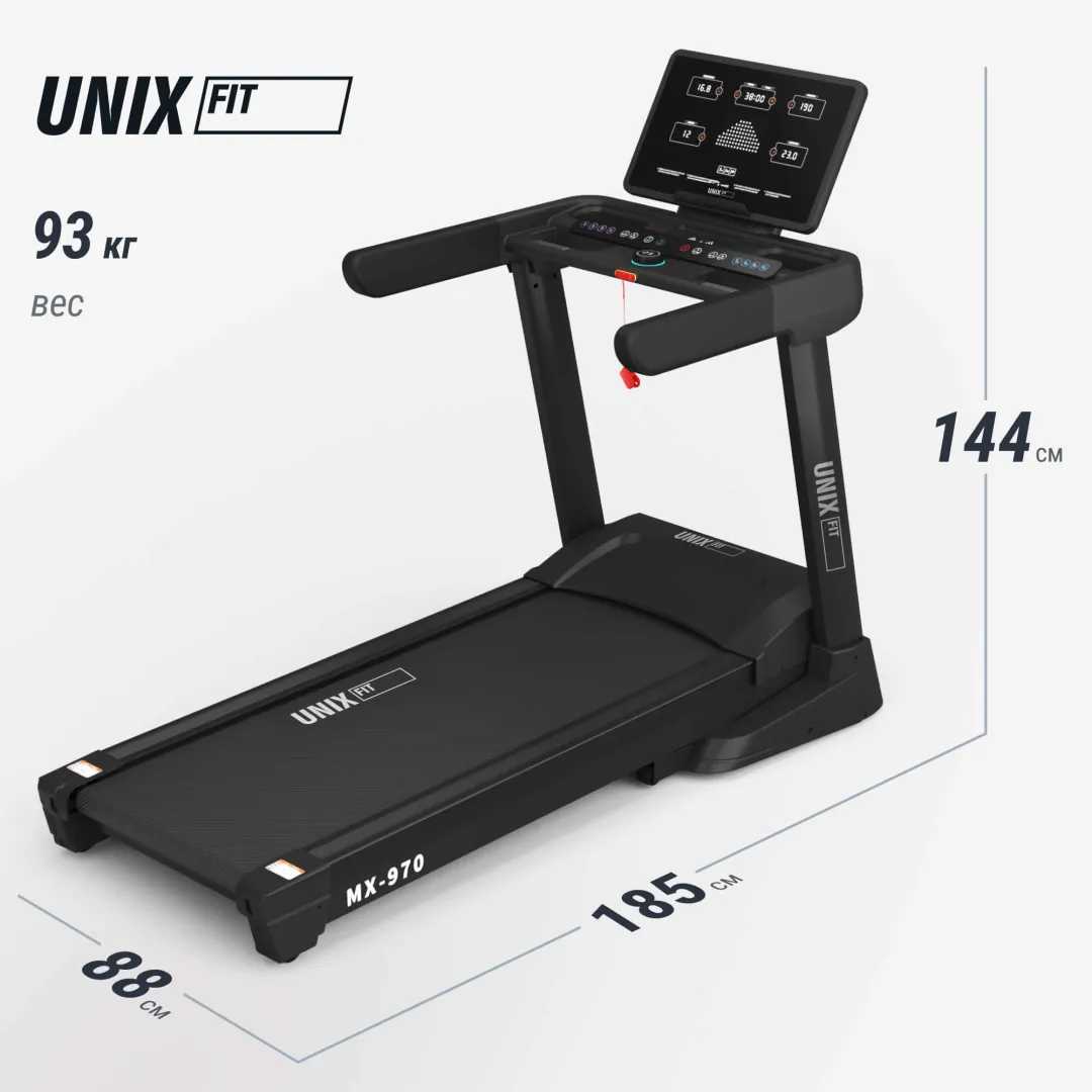 Высококачественные материалы, продуманная эргономика, современная электроника и расширенный функционал делают складную беговую дорожку UNIX Fit MX-970 отличным выбором для похудения, поддержания физической формы и регулярных домашних тренировок.