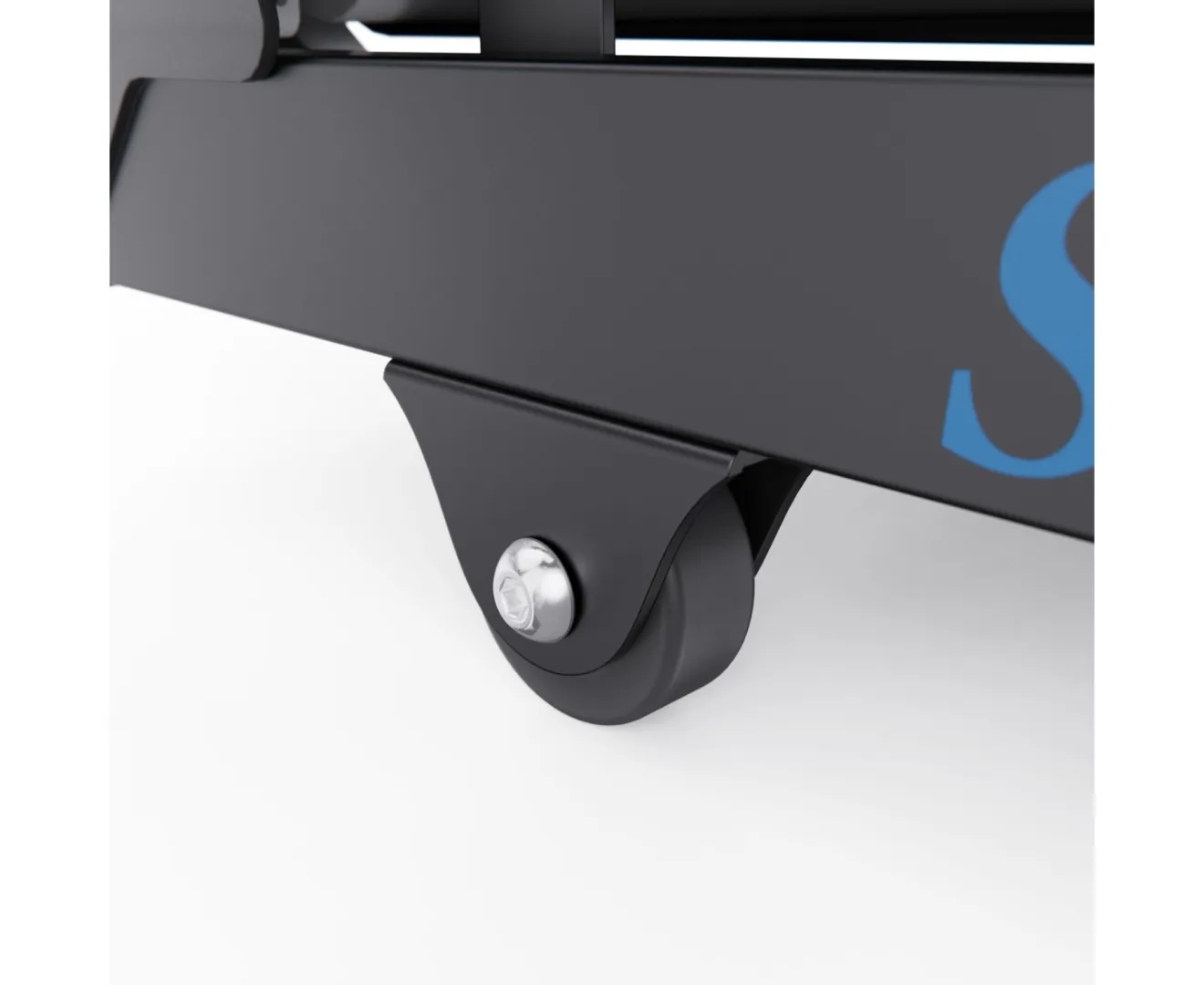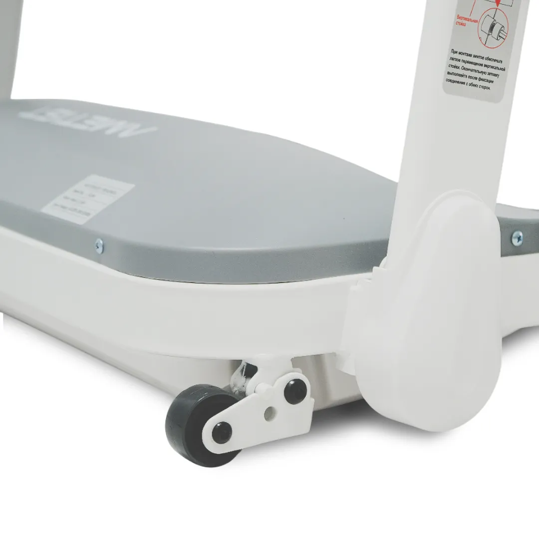 Эргономика и хранение: Дорожка имеет складную конструкцию с гидроцилиндром для экономии пространства и встроенные транспортировочные ролики для лёгкого перемещения.