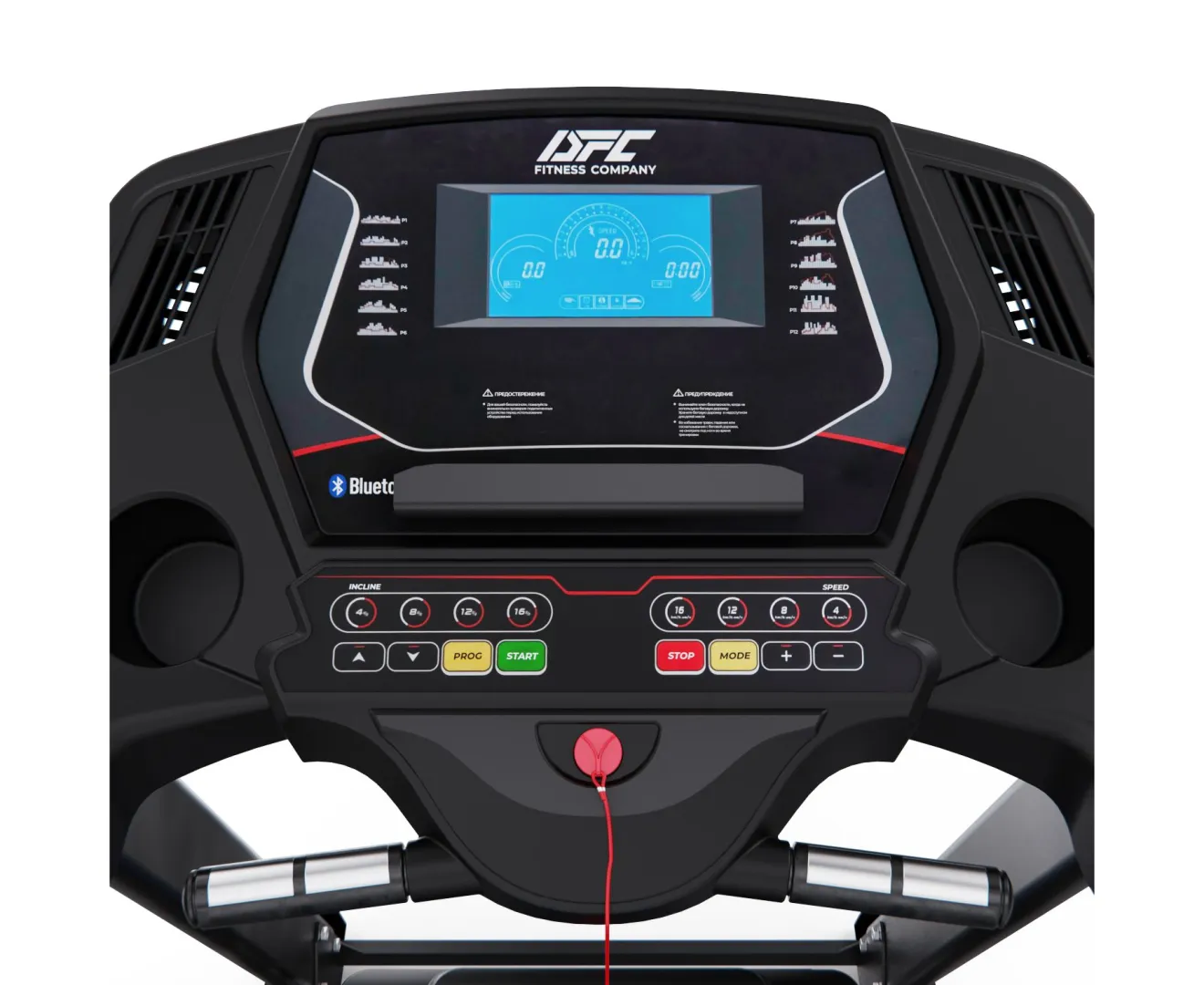 Дополнительные функции: Встроенная звуковая система с динамиками, разъёмами MP3 и USB позволяет тренироваться под любимую музыку. Консоль отображает основные параметры: скорость, время, дистанцию, калории и пульс.