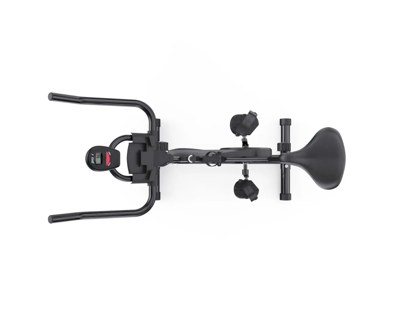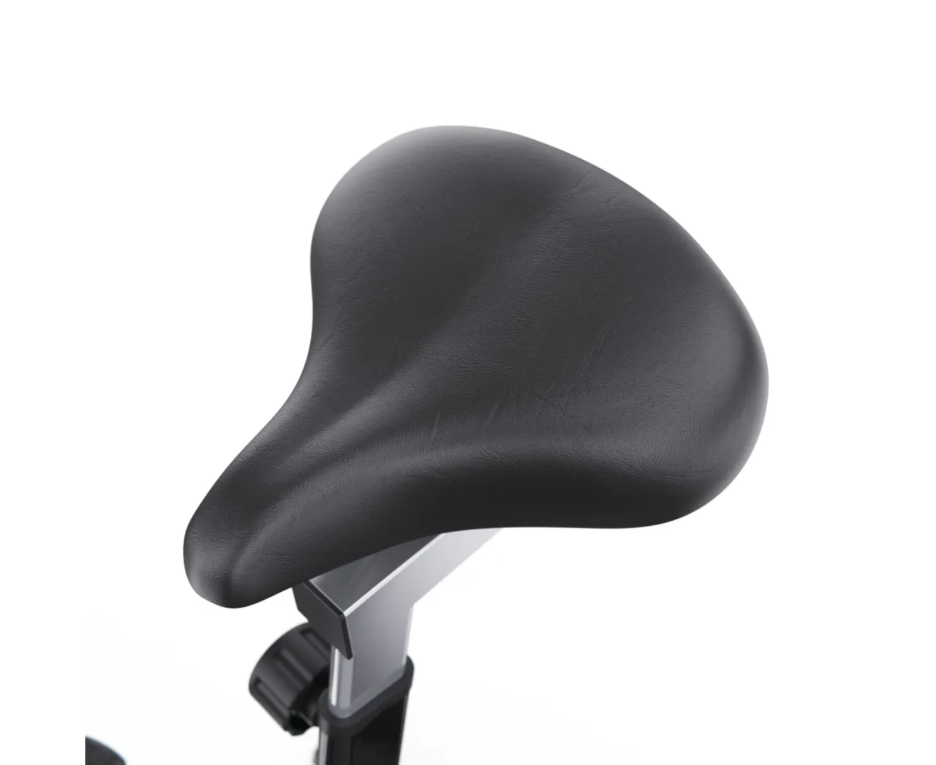 Тренажер оснащен механической колодочной системой нагрузки с бесступенчатой регулировкой сопротивления. Маховик с инерционным весом 12 кг обеспечивает плавный и реалистичный ход, имитирующий езду на шоссейном велосипеде. Сиденье регулируется по высоте (5 уровней), горизонтали и углу наклона, а руль — по высоте (5 уровней), что позволяет точно настроить комфортную и правильную посадку.