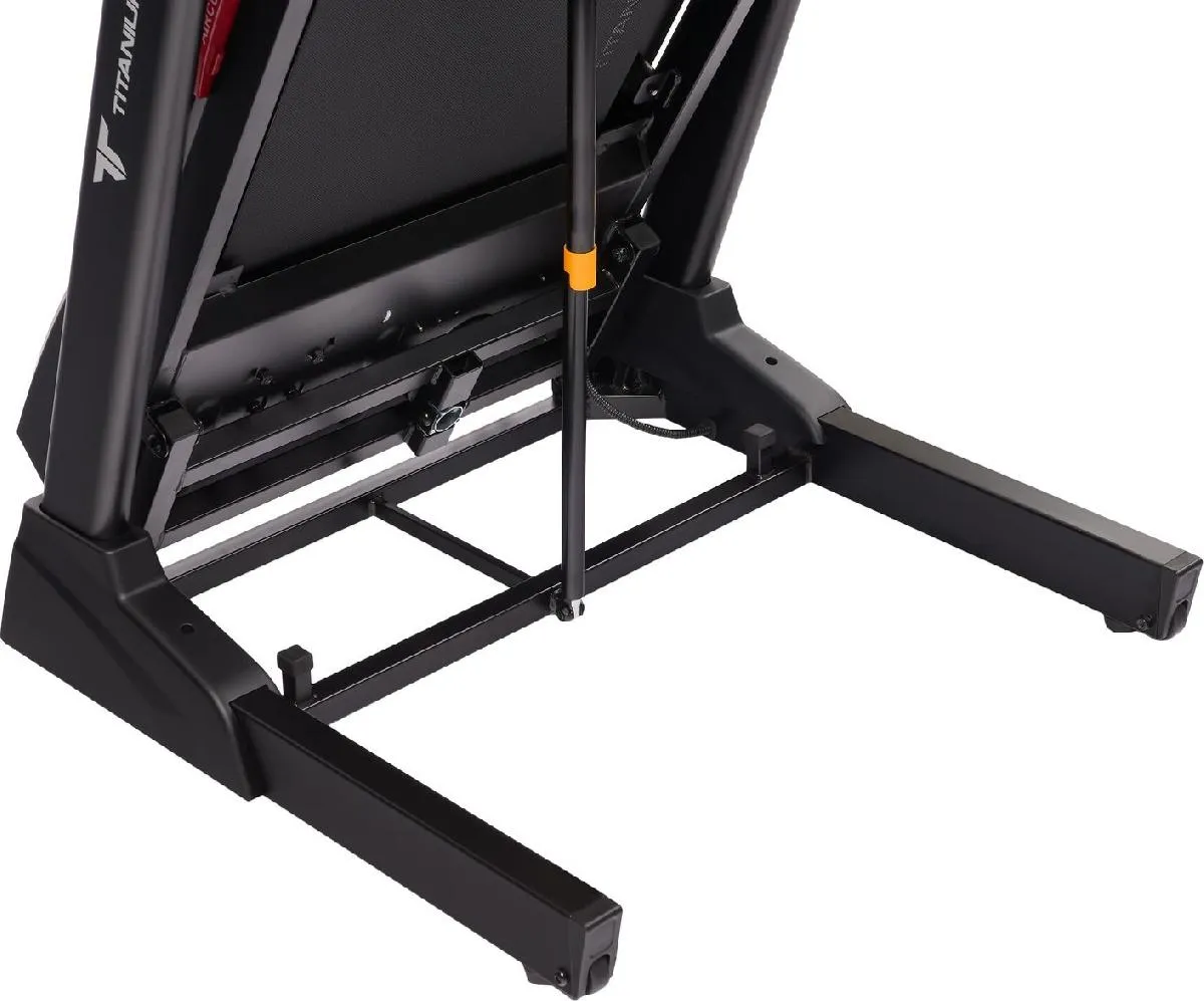Многофункциональная компактная беговая дорожка Titanium Masters Physiotech X-CompactВысокотехнологичный Titanium Masters Physiotech X-Compact - это продукт с превосходными техническими характеристиками и дизайном. Он относится к премиальному классу беговых дорожек для использования дома и предназначен для широкого круга пользователей. Однако, главными качествами Titanium Masters Physiotech X-Compact являются комфорт, эстетика и дизайн, а не только его технические характеристики. Дорожка построена на новейшей платформе "Type X" и отличается от других своим уникальным дизайном рамы - когда тренажер сложен, он имеет форму "X" благодаря разнонаправленному расположению рамы и стоек консоли, а также отсутствию моторного отсека в передней части деки. Если вы ищете комбинацию передовых технологических решений и современного дизайна, то вам понравится Titanium Masters Physiotech X-Compact. Этот тренажер имеет уникальный форм-фактор, который привлечет внимание пользователей, ценящих эстетику. Но не только внешность делает его особенным. Беговое полотно размером 145*50 см является одним из самых больших в своем классе, но при этом тренажер занимает меньше места, чем его конкуренты. В сложенном состоянии X-Compact всего 99 см в длину, что делает его идеальным выбором для тех, кто хочет сэкономить пространство.