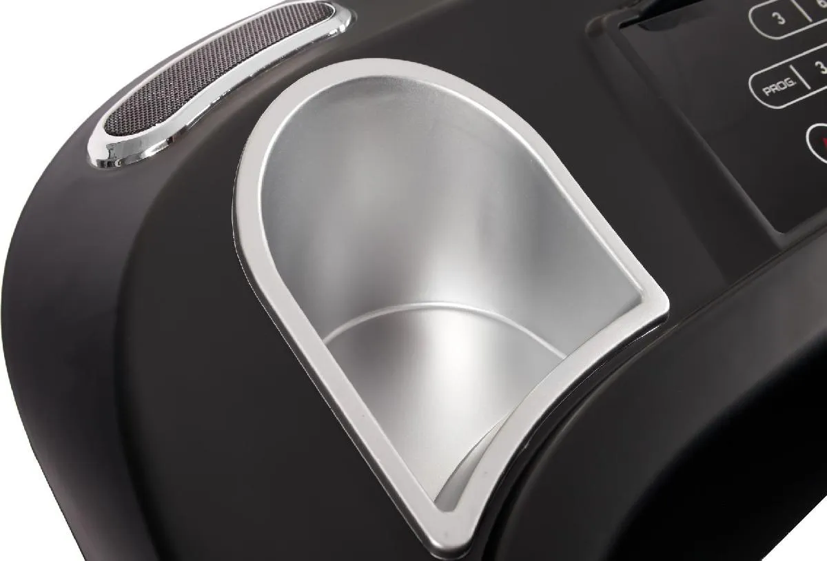 Смартфон легко управляется через Bluetooth, а зарядить его можно через консольный USB порт. Для разнообразия тренировки предусмотрена мультимедийная составляющая, включающая колонки мощностью 3 ватта. Клавиши консоли позволяют контролировать воспроизведение аудио. Подставка для смартфона установлена на дорожке, которая складывается с помощью двухфазной гидравлики easy-DROP™. Дорожку можно смазать через отверстие в передней части рамы или традиционным способом. Для перемещения используются 2 транспортировочных ролика Titanium Masters Physiotech X-Compact.