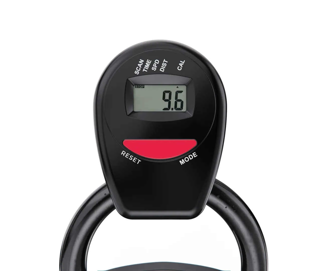 На LCD-дисплее отображаются ключевые параметры тренировки: время, скорость, дистанция, количество сожженных калорий и режим сканирования. Для работы дисплея требуются 2 батарейки типа ААА (не входят в комплект).