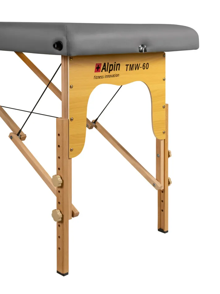 Alpin TMW-70 GRAY – массажный столРешение для массажистов и косметологов. Легкая деревянная рама всего 14.5 кг делает стол удобным для транспортировки. Складывается в компактный чемодан - возьмите его куда угодно. Универсальное применение: от классического массажа до SPA-процедур. Мягкий поролон 5.1 см и практичная ПВХ-обивка обеспечивают комфорт клиентам. Регулируемая высота в 6 положениях от 61 до 83 см подстроится под любого специалиста. Удобные подлокотники и отверстие для лица с заглушкой. Просторная поверхность 186х71 см выдерживает до 220 кг. Габариты в сложенном виде 95х18х75 см, вес упаковки 16 кг.