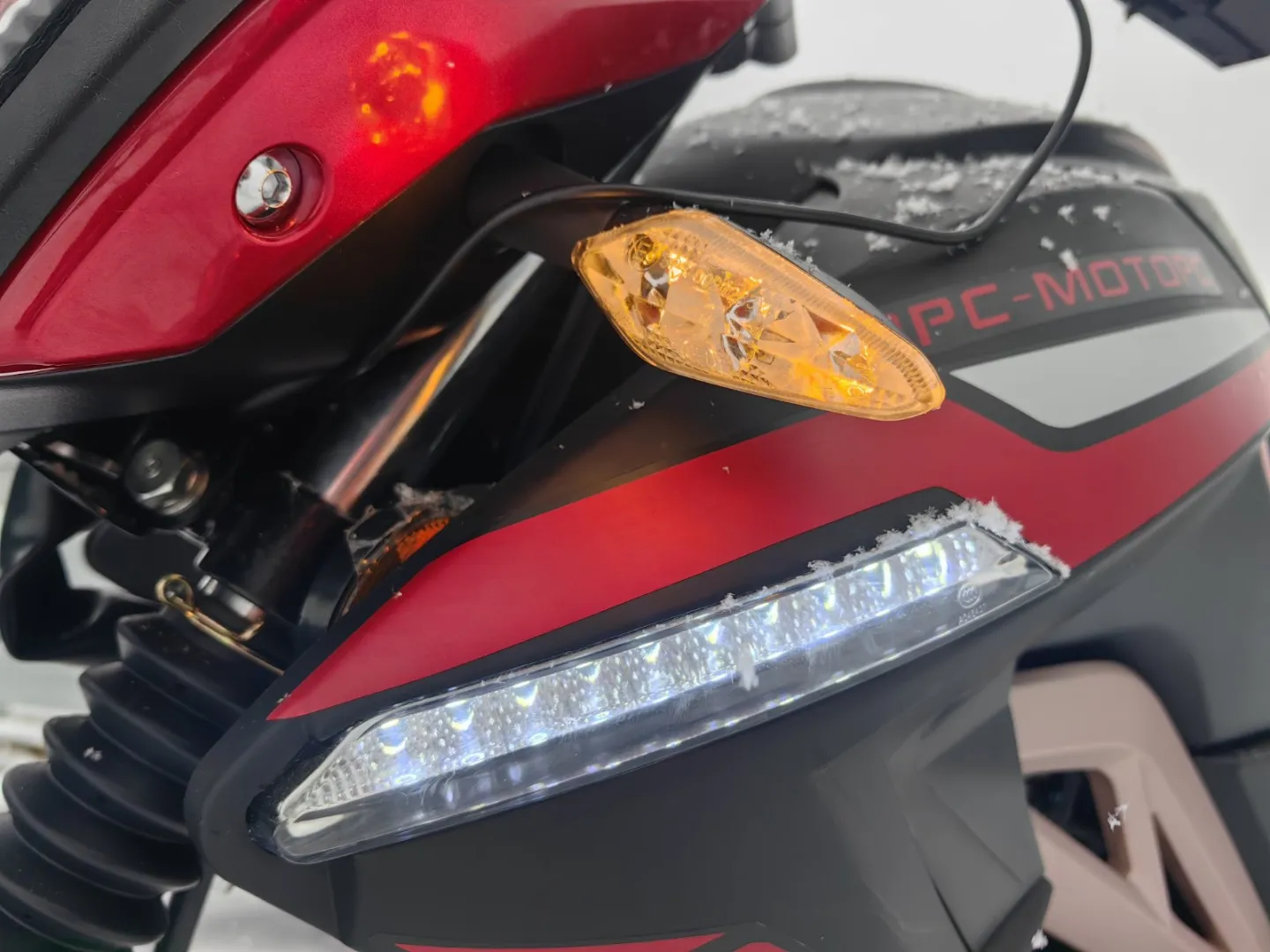 Литые алюминиевые ступицы и усиленные спицы предназначены для экстремальной езды. LED оптика с возможностью переключения ближний\дальний свет.