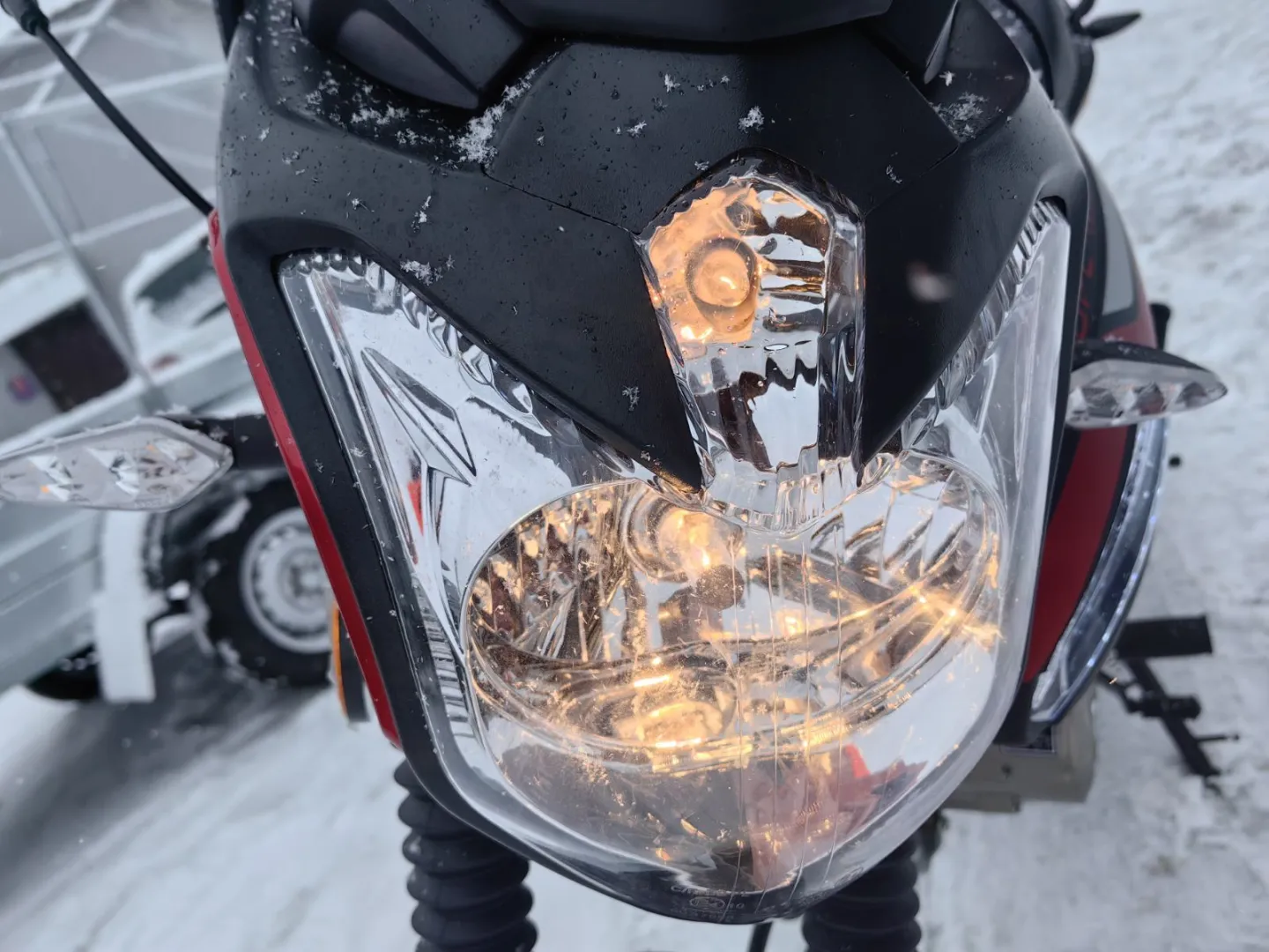 - Передняя фара: Линзованная LED