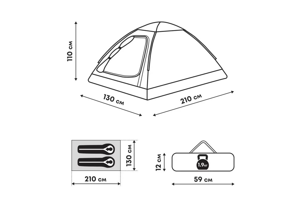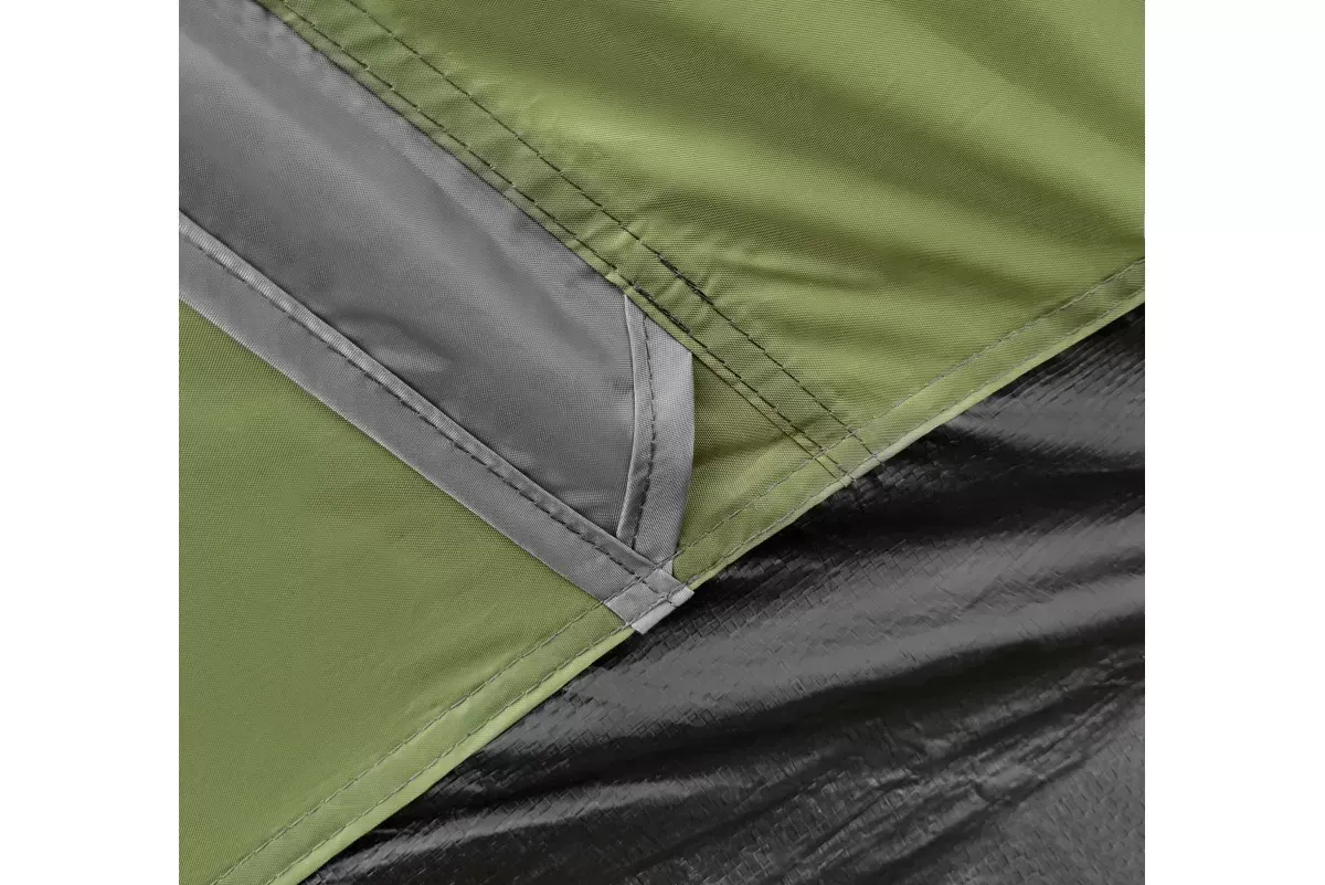 Тент выполнен из полиэстера 190T 68D с водонепроницаемостью 3000 мм, защитой от УФ-излучения и огнезадерживающей пропиткой, швы проклеены термоусадочной лентой. Дно изготовлено из армированного полиэтилена (терпаулинга) с водонепроницаемостью 10000 мм. Каркас собран из фиберглассовых дуг с металлическими наконечниками.