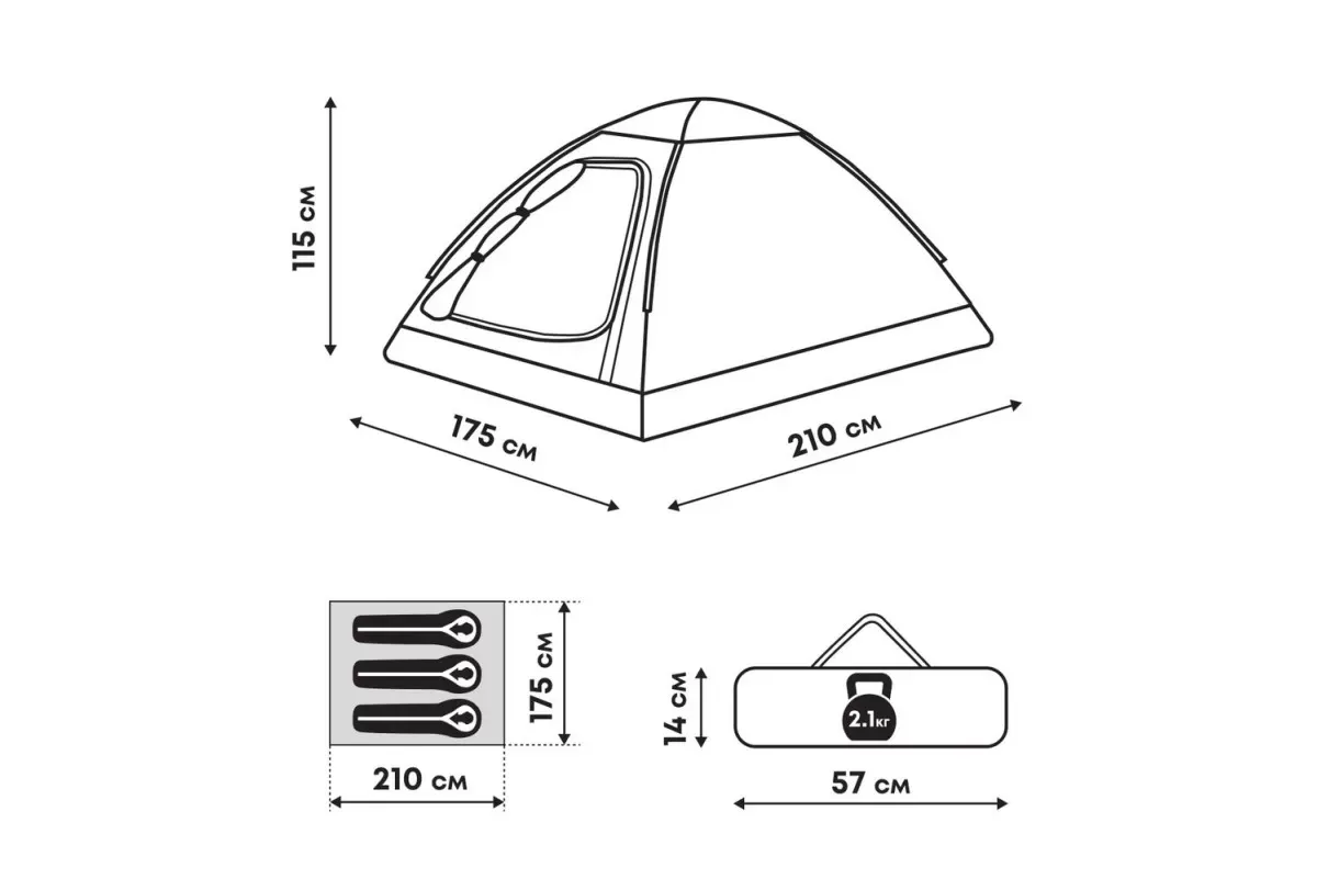 Тент выполнен из полиэстера 190T 68D с водонепроницаемостью 3000 мм, защитой от УФ-излучения и огнезадерживающей пропиткой, швы проклеены термоусадочной лентой. Дно изготовлено из армированного полиэтилена (терпаулинга) с водонепроницаемостью 10000 мм. Каркас собран из фиберглассовых дуг с металлическими наконечниками.