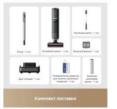 - Функциональные особенности: всасывание жидкостей, дисплей, автоматическая мойка швабры, автоматическая сушка швабры, мойка пола горячей водой