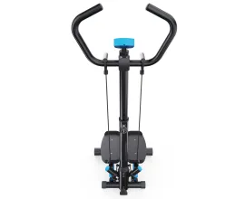 Гидравлическая система с взаимозависимым ходом педалей обеспечивает равномерную нагрузку. Механическая регулировка позволяет менять уровень сопротивления. Максимальный вес пользователя — 100 кг. Педали размером 33,5 х 14 см с противоскользящим покрытием, расстояние между ними 7 см — для комфортной постановки ног и снижения нагрузки на суставы.