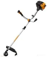 Мощность: 2350; Ширина скашивания: 42; Расположение двигателя: верхнее; Форма штанги: прямая; Сменные насадки: нет; Разъемная штанга: есть; Телескопическая штанга: нет; Регулировка угла наклона: нет; Колеса: нет; Тип бензинового двигателя: двухтактный; Рабочий объём двигателя: 52; Легкий пуск: есть; Ёмкость топливного бака: 1.3; Диаметр лески: 2.4; Подача лески: полуавтоматическая; Вес: 8.3